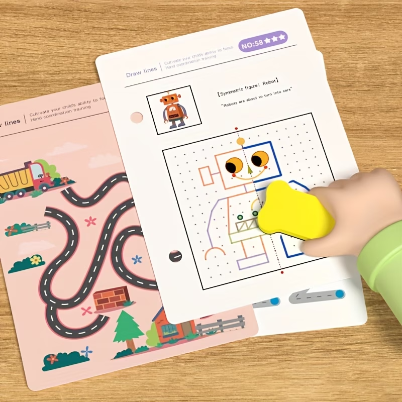 96-page Reusable Tracing Workbook for Educational Drawing and Pencil Control Training, Includes Pen and Eraser