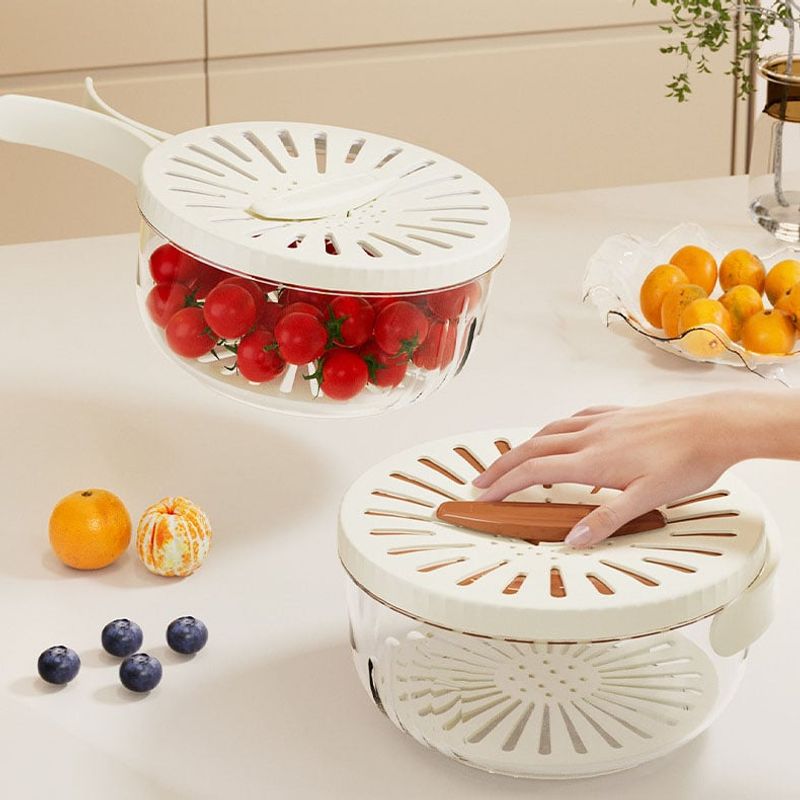 Multifunctional Design: Our Multifunctional fruit and vegetable washing bowl for fridge is designed with the detachable inner colander for filter, the clear outer container for storage, and the lid with good air tightness to keep the content fresh, leaving you a nice using experience.